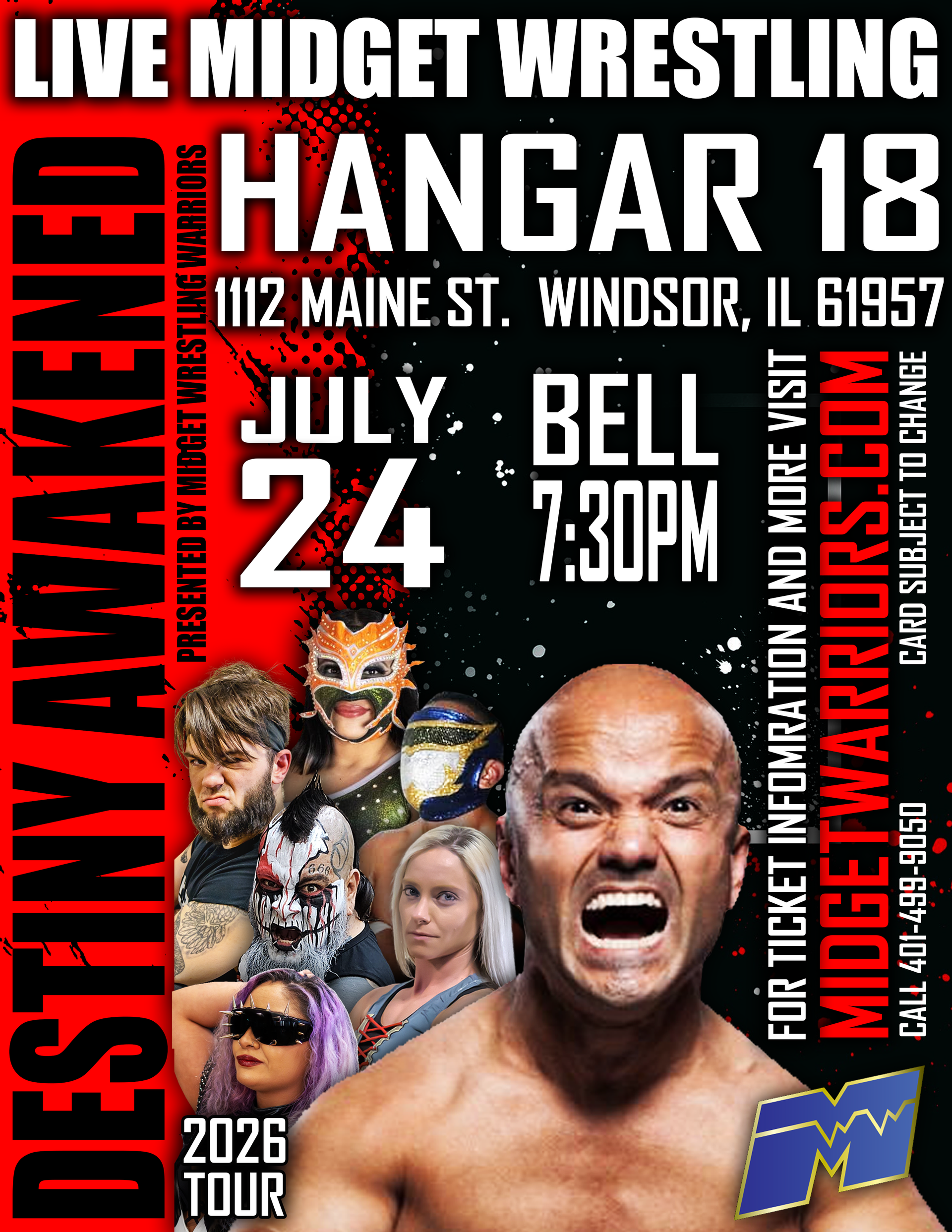 Get ready as the Destiny Awakened Tour rolls into town, showcasing the biggest names in professional midget wrestling — and they’re bringing larger-than-life personalities, athleticism, and entertainment that can only be found inside a Midget Wrestling Warriors ring!